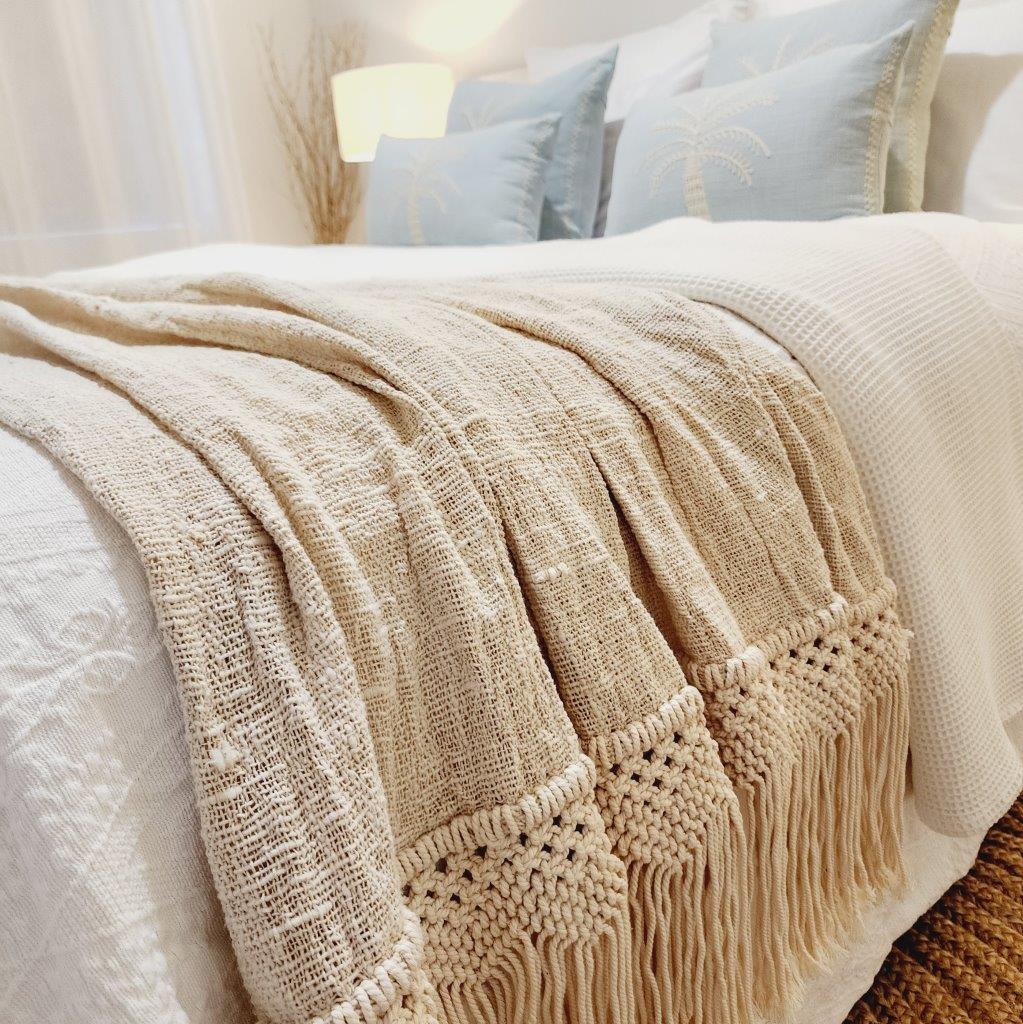 Dreaming about tropical islands? Or your own boho sanctuary? Bring some paradise into your home with our stunning range of coastal and boho cushion covers, throw blankets and quality bed linen, lovingly handmade from quality linen & cotton.