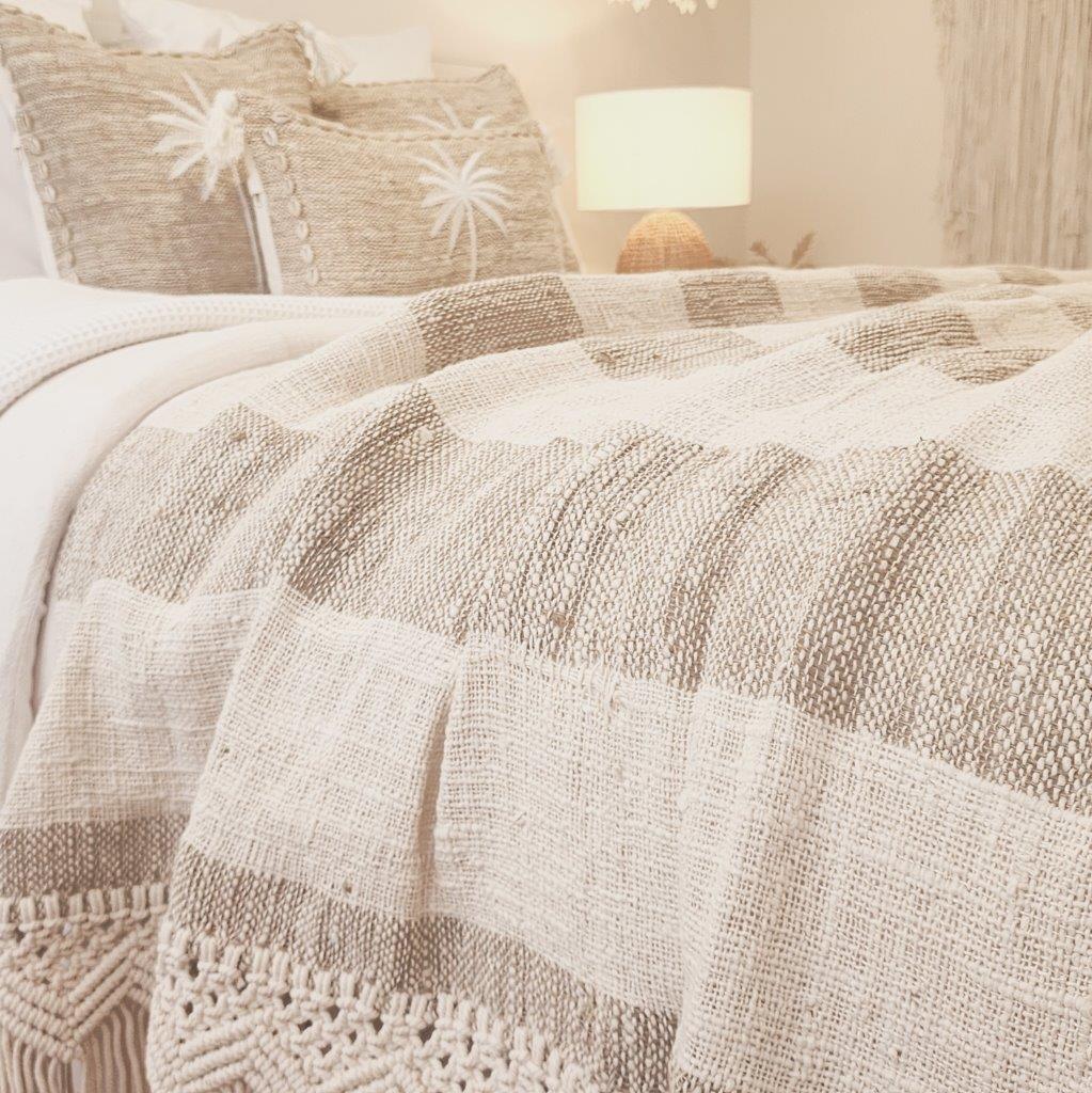 Escape to island living with our Coastal Haven Throw — a beautifully woven blend of jute and cotton that captures the essence of barefoot luxury. Hand-loomed with textured stripes and intricate macramé fringe, this throw brings a touch of tropical artistry to your home. Perfect for draping over your bed, sofa, or daybed, it’s the effortless layer that adds natural texture and laid-back boho charm to any space.