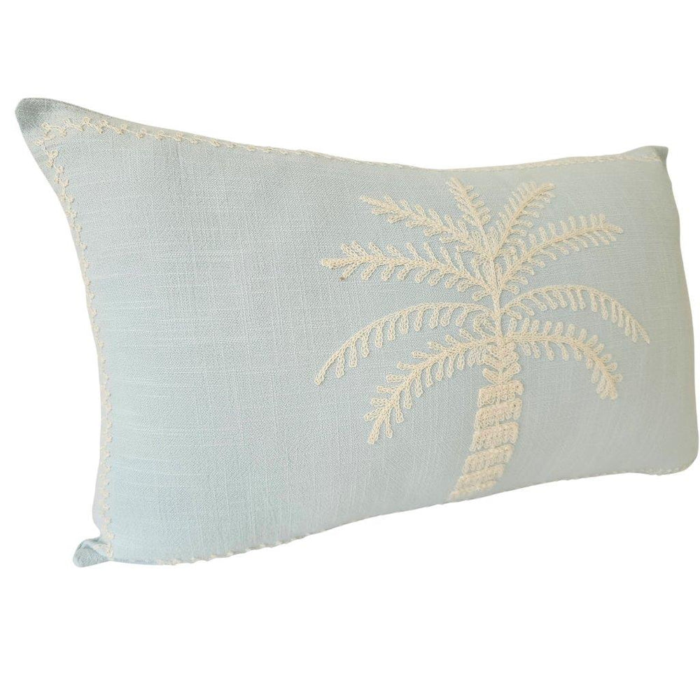 Let our Cerulean Sea Cushion Cover transport you to the shoreline — where ocean breezes, blue horizons, and palm tree silhouettes meet. Featuring an embroidered palm tree design on calming cerulean blue cotton. A beautiful coastal-inspired tone for a fresh, beachy aesthetic and an ideal accent for coastal, boho, or Hamptons-style interiors