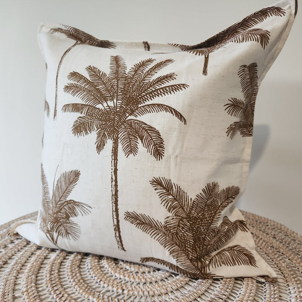 Our Coco Palm cushion cover will have you sipping cocktails and laying back while your dream of tropical islands in the sun. Made from high quality linen, and featuring a super cute steel blue palm print. Pairs beautifully with most of our stunning range.