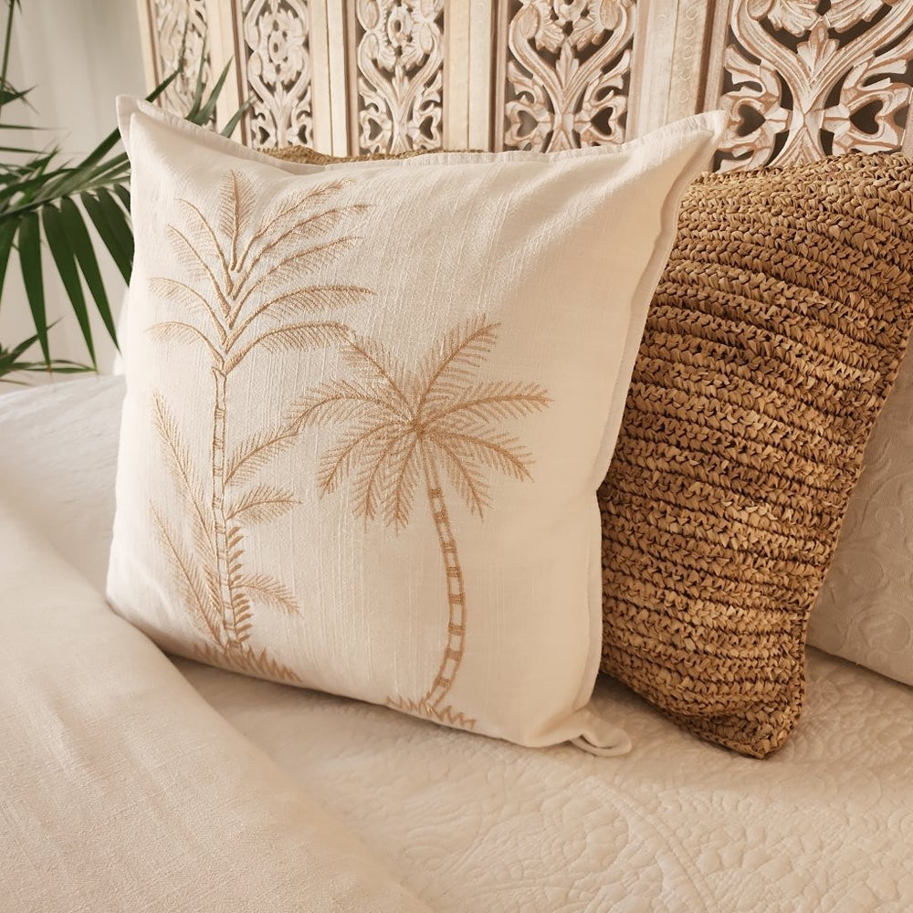 Add a touch of elegance & sophistication to your home décor with our luxurious embroidered Golden Palms Cushion Cover. Made from high quality linen cotton, it pairs beautifully with most of our stunning cushion cover collection.