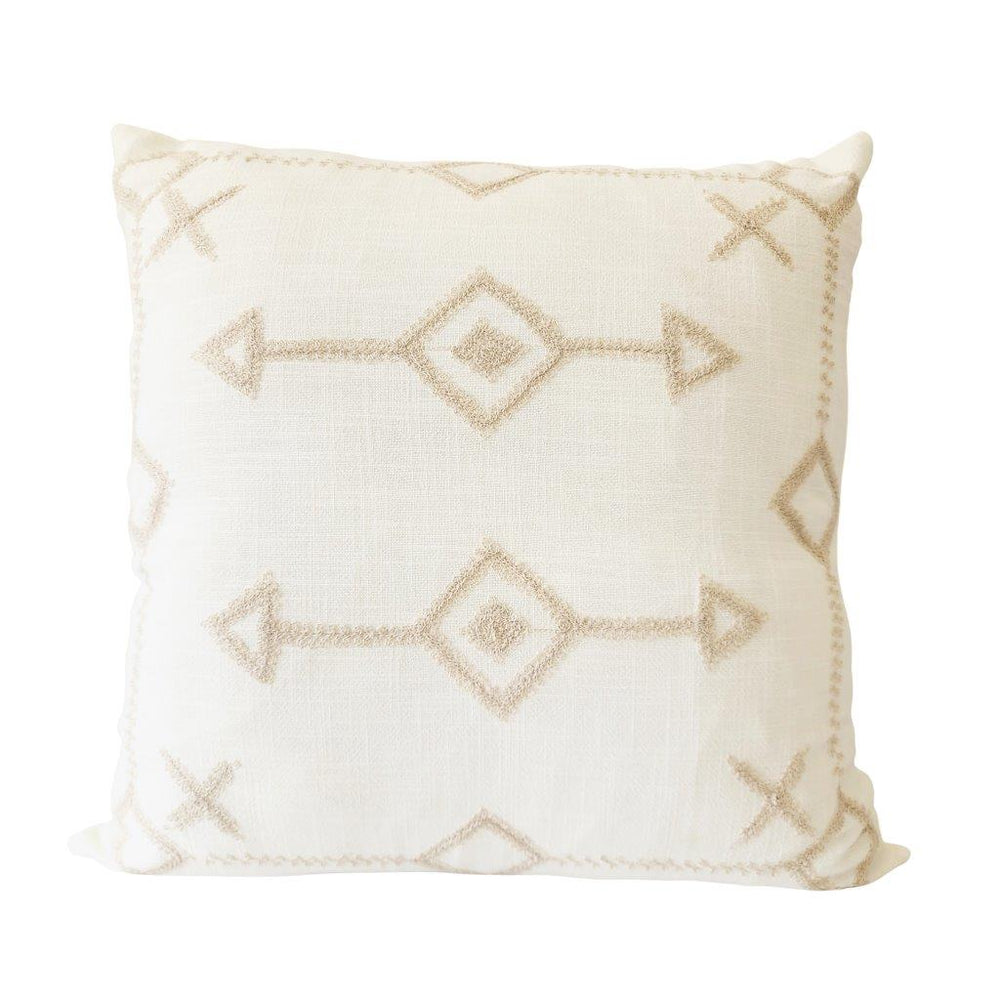 A versatile and stylish accent, our Kasha Cushion Cover brings a touch of bohemian spirit to any interior. Crafted from soft white cotton, this cushion features a delicate embroidered diamond and arrow motif in neutral sand tones. The geometric design adds gentle structure and movement, reminiscent of handwoven tribal patterns found in coastal retreats around the world.