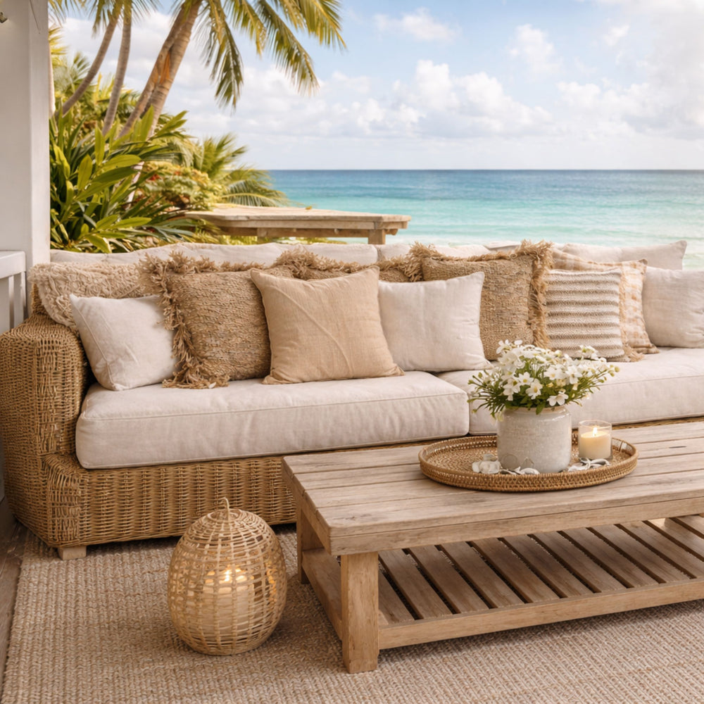 Every day should be a beach day and our Maldives Raffia Cushion Covers have us dreaming of thatched tropical huts and cocktails by the beach. These beautifully handwoven raffia cushion covers with raffia fringing will add a natural element to your cushion styling.
