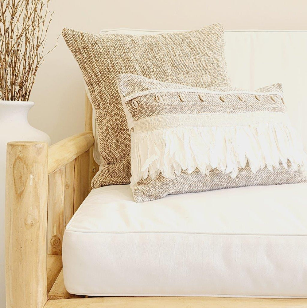 Bring a touch of seaside elegance home with our Shorebird Cushion Cover. Featuring delicate cowrie shells and soft white feathers on a woven base, it captures the effortless beauty of coastal boho living. The combination of organic elements and earthy tones creates a piece that feels both relaxed and refined. Perfect for styling on your bed or lounge, our Shorebird Cushion Cover adds a touch of seaside charm and airy boho luxury to your home.